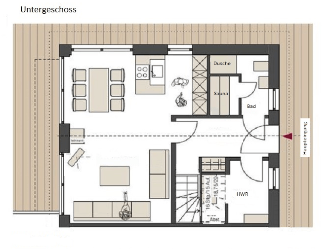 Auf der großzügigen nach Süden und Westen ausgerichteten Terrasse können Sie entspannen und das Treiben auf der Harle beobachten. Von dieser Seite der Doppelhaushälfte genießen Sie den direkten Blick auf Yachthafen und Segelschule. Der Elektrokamin sorgt nicht nur bei stürmischen Wetter für eine angenehme Wohlfühlatmosphäre. Eine Glastür schirmt die oberen Schlafräume vor Lärm